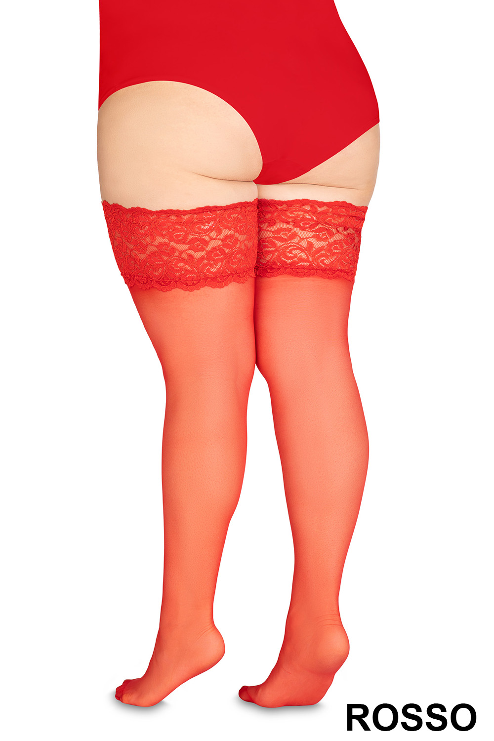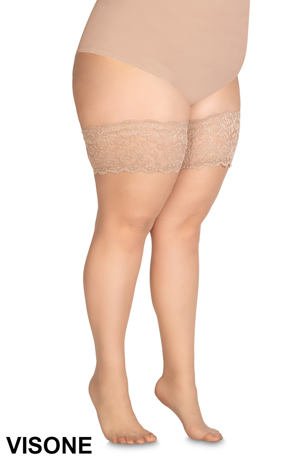 Ohuet, 20 denierin stayupit korkealla pitsisellä yläosalla.
