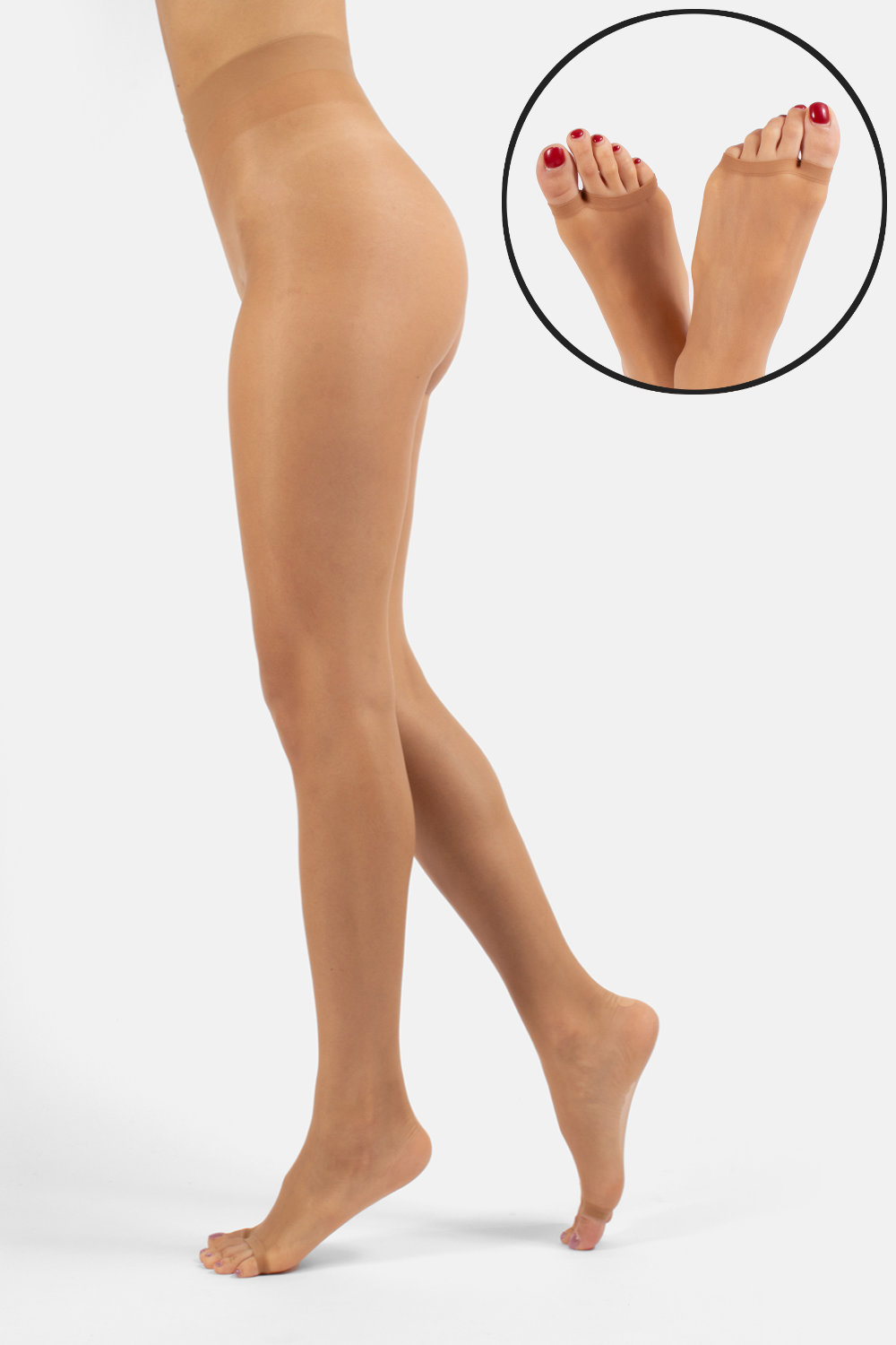 Hyvin ohuet, 10 denierin Open Toe sukkahousut. Sukkahousuissa on avonainen varvasosa, joten ne sopivat erinomaisesti avokärkisten kenkien kanssa käytettäviksi.