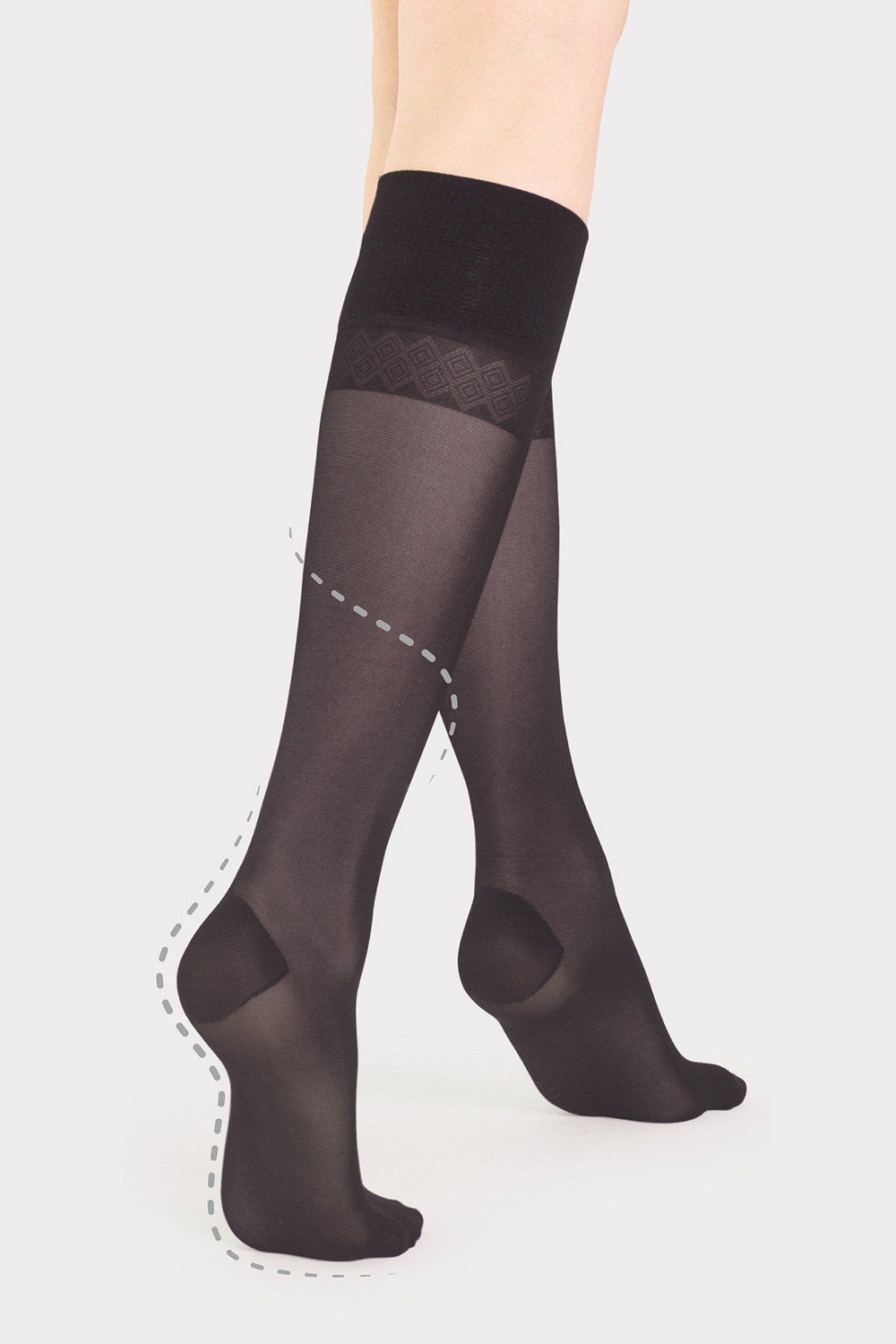 Paksut, 40 denierin tukipolvisukat. Tukipolvisukat auttavat vähentämään jalkojen väsymistä ja turvotusta.