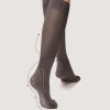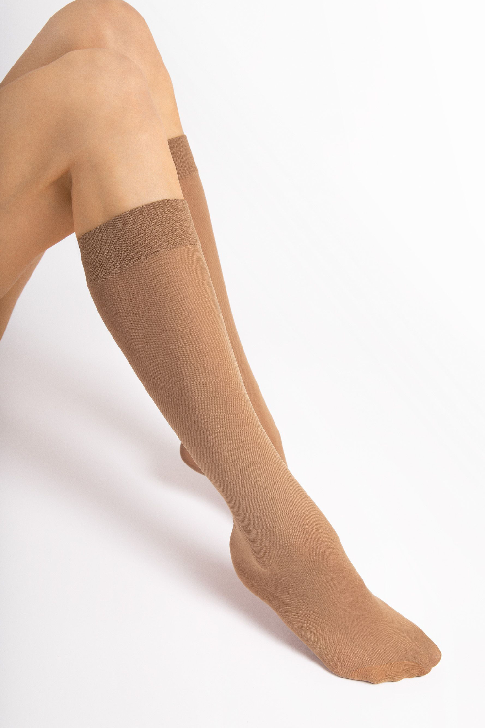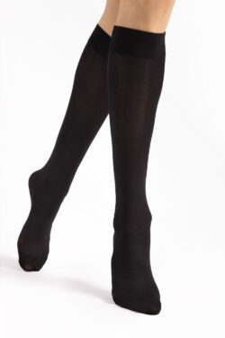 Sileät yksiväriset 60 denierin polvisukat. Kiristämätön resori ja huomaamaton kärkivahvike.
