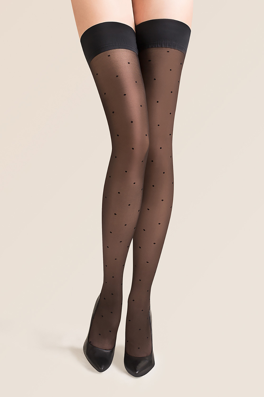 Sensuellit stay up -sukat perinteisellä pilkkukuvioinnilla. Nämä stayupit ovat erinomainen valinta juhliin.