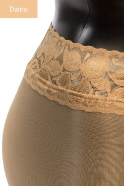 Paksut, 40 denierin sukkahousut pitsisellä vyötärönauhalla. Vyötärönauhan silikoni estää tehokkaasti sukkahousuja valumasta tai rullautumasta.