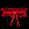 Kapea punainen sukkanauha rusetilla.