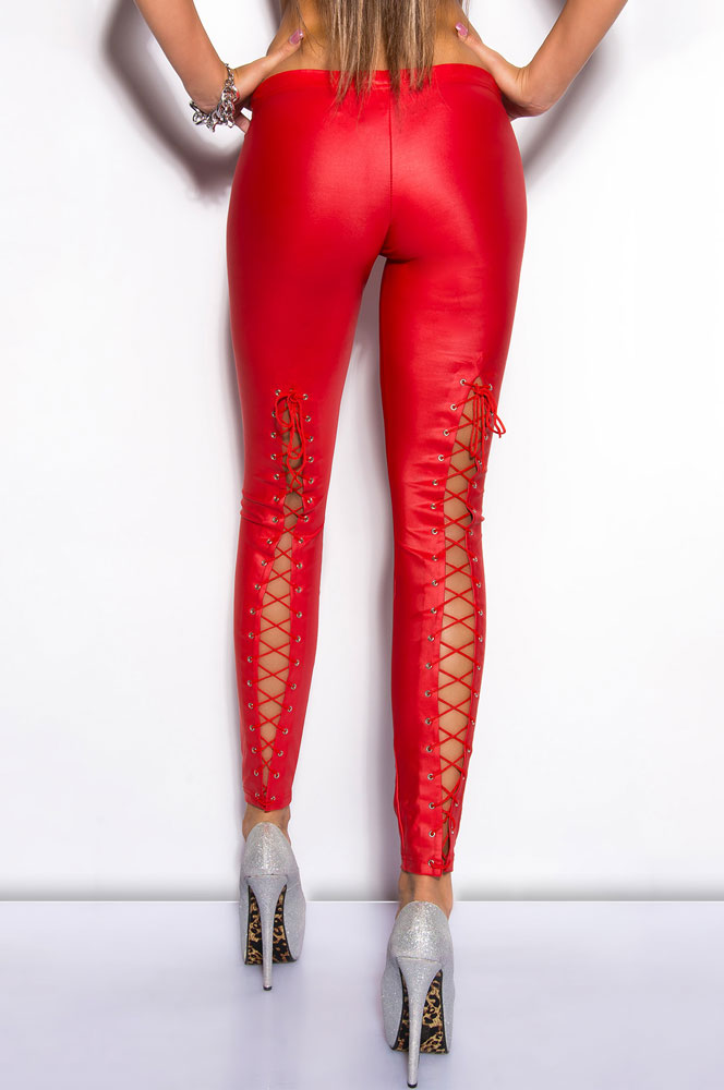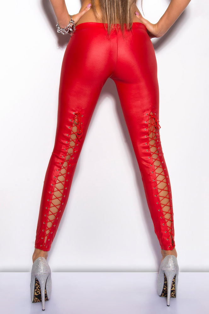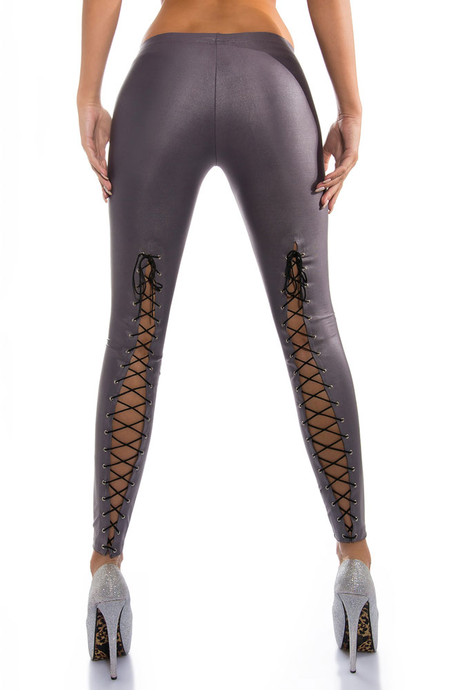 Todella upeat wet look legginsit joissa on näyttävä nyöritys takana.